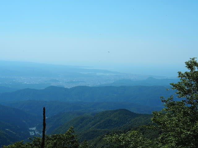 この日いちばんの大展望が広がる。鳥取市街、湖山池方面が見下ろせる。