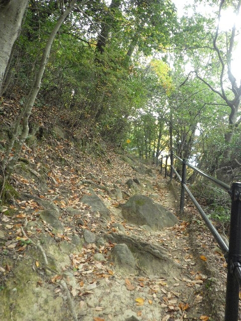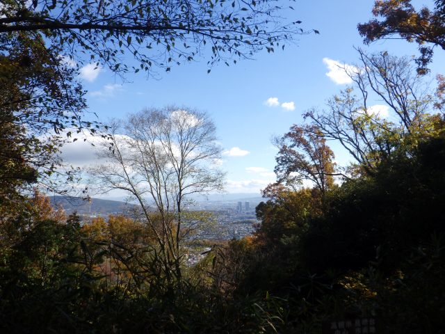 元の登山道に戻る、しばらく進むと、高槻市の中心街が見下ろせる展望スポットに着く。