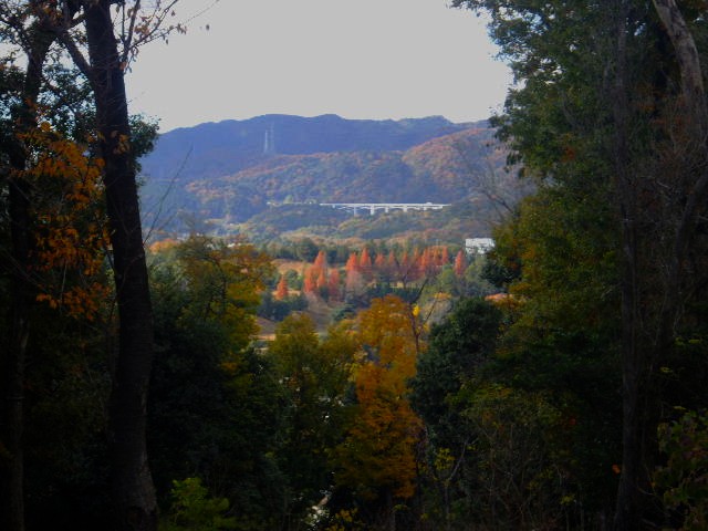 林道に出る。林道からは正面に新名神高速道路が見える。千提寺のあたりかな。